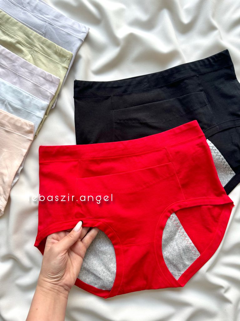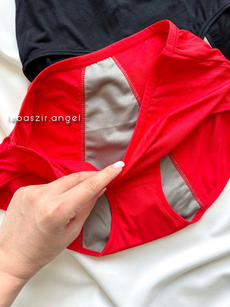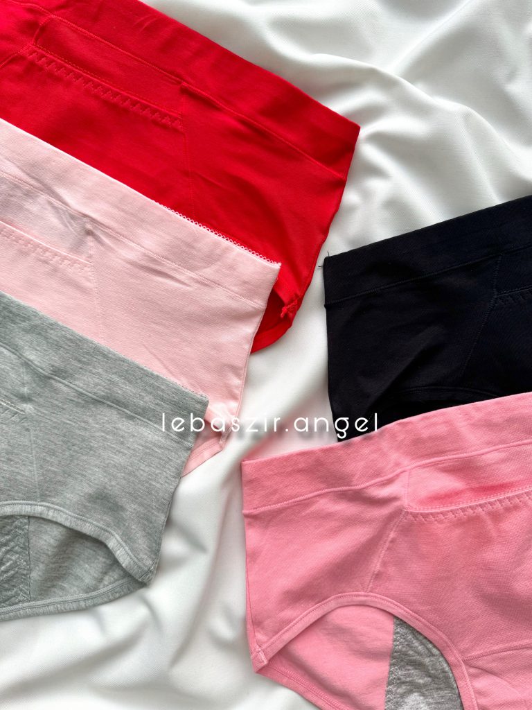- شورت تمام پوش یا High Waist: این مدل ها پوشش کامل در ناحیه شکم و باسن دارند و برای شب یا روزهای اول قاعدگی که خونریزی زیاد است، بسیار مناسبند. جنس نرم و طراحی جذب آن ها باعث احساس امنیت بیشتر می شود.