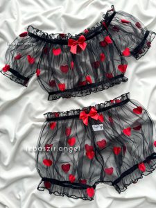 ست کامل شامل سوتین هارنسی فنردار، شورت لامبادا، دامن، بند جوراب یا گارتر و دو عدد گارتر دور ران