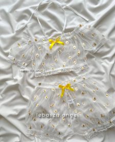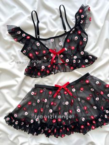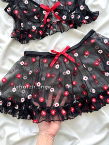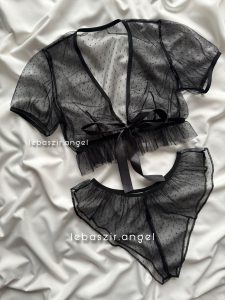 ست نیمتنه و شورت توری خالدار مشکی کد 1015