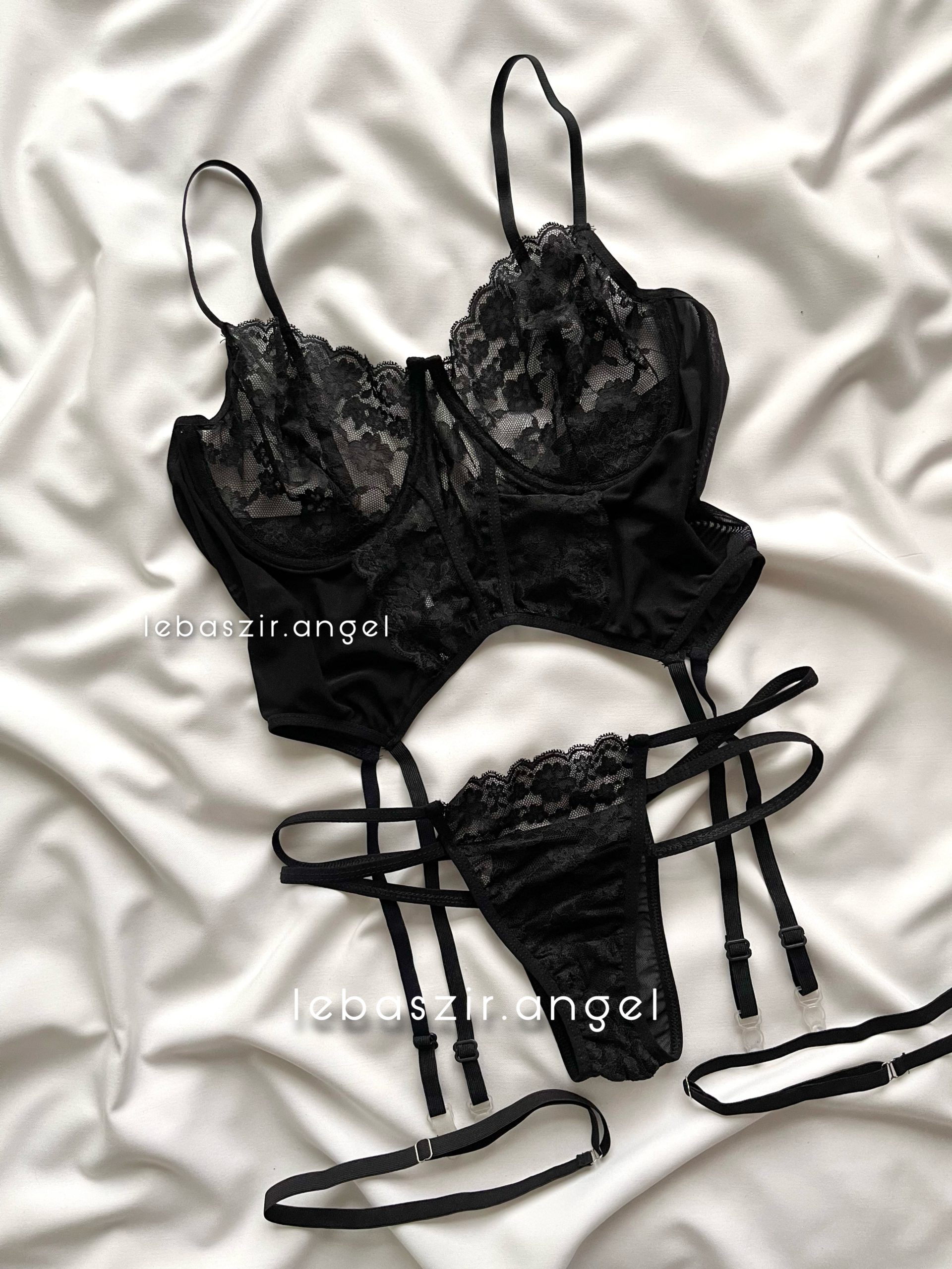 ست کامل همراه با شورت لامبادا، بند جوراب و دو عدد گارتر دور ران