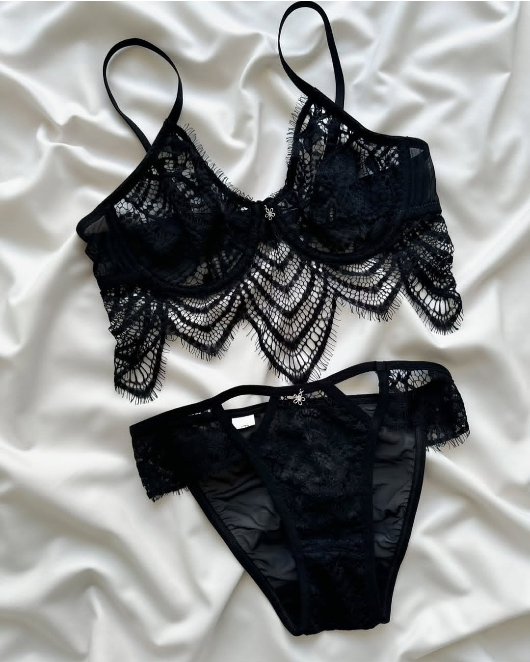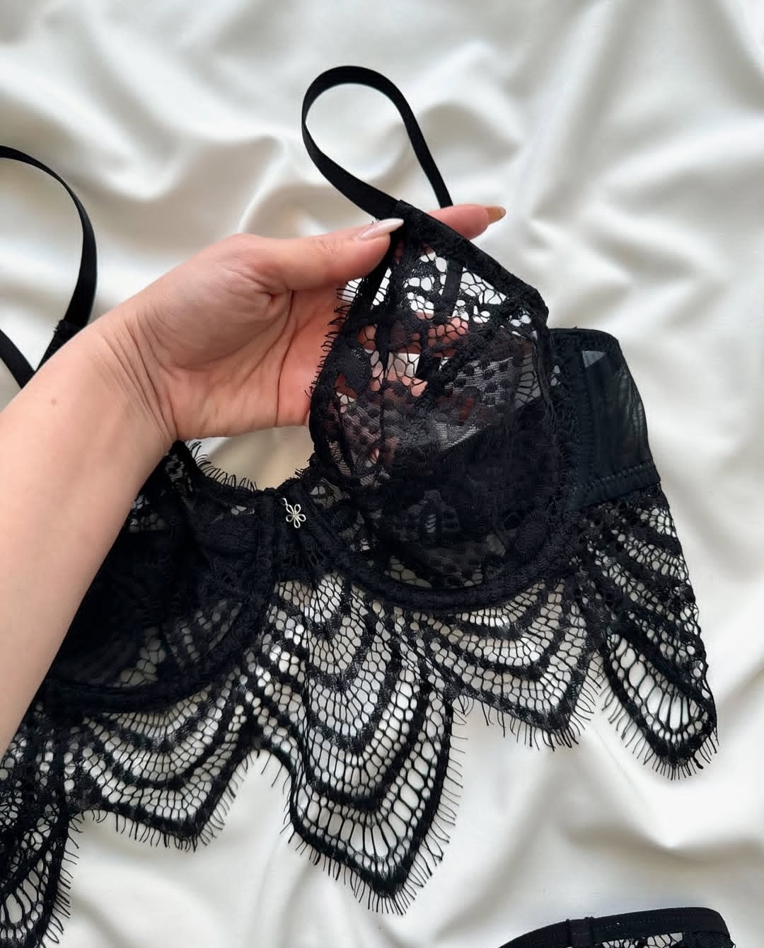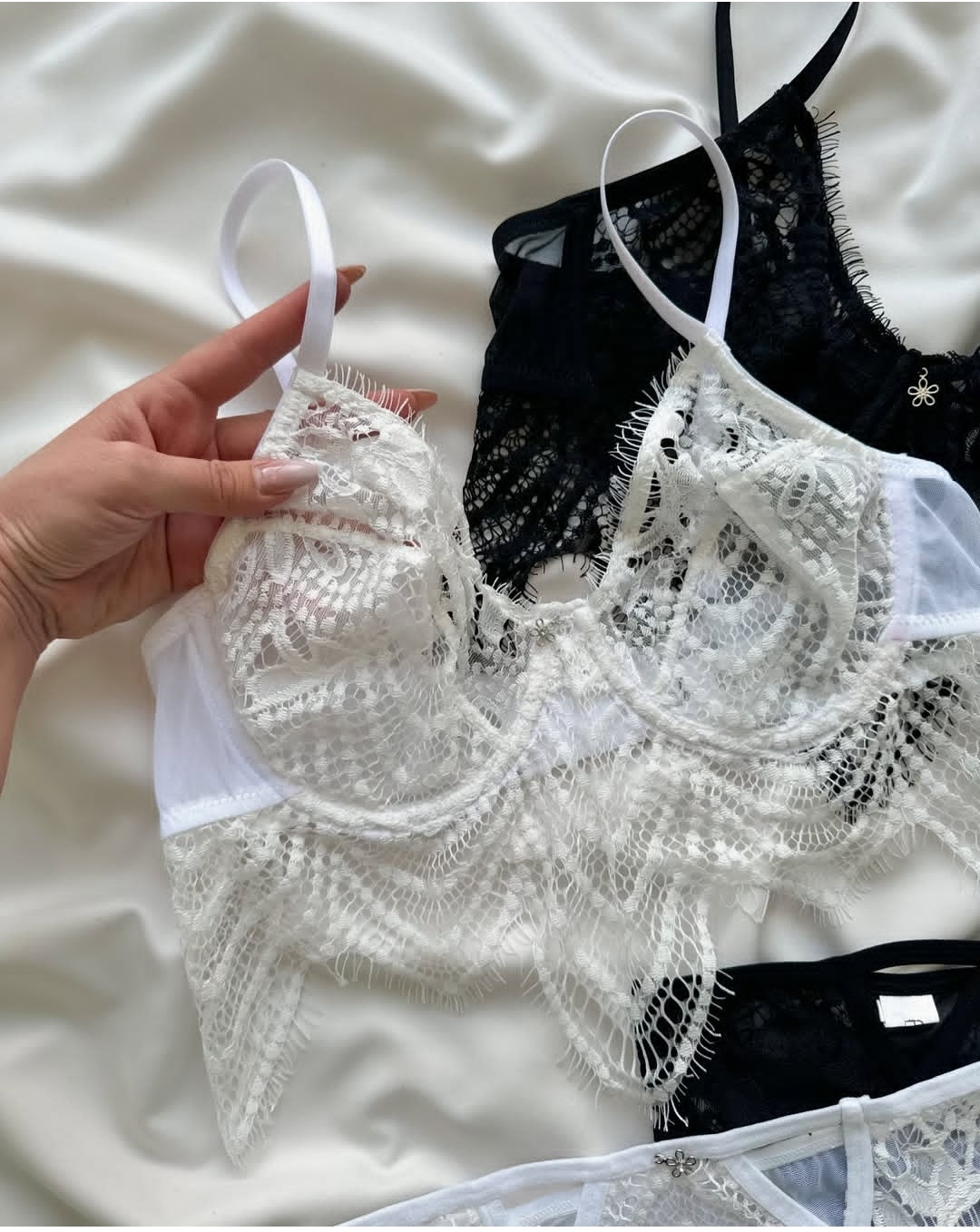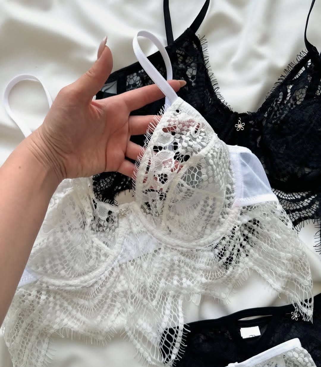 ست سوتین و شورت گیپور فانتزی ۳تیکه فنردار کد 0088