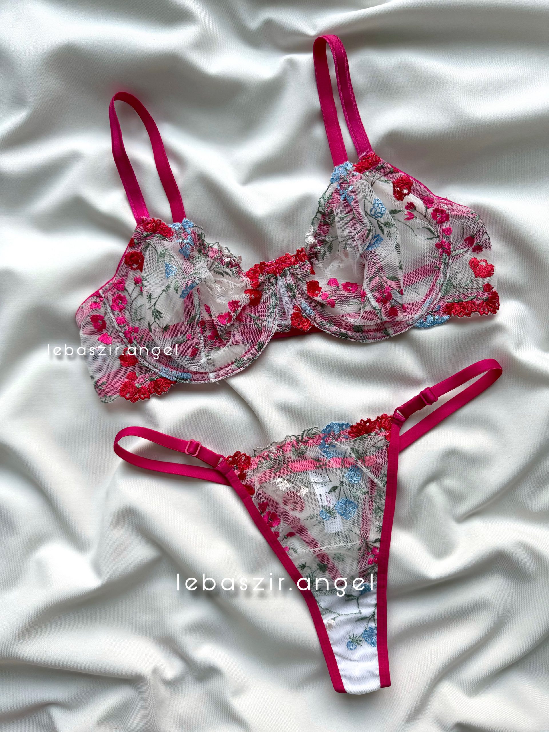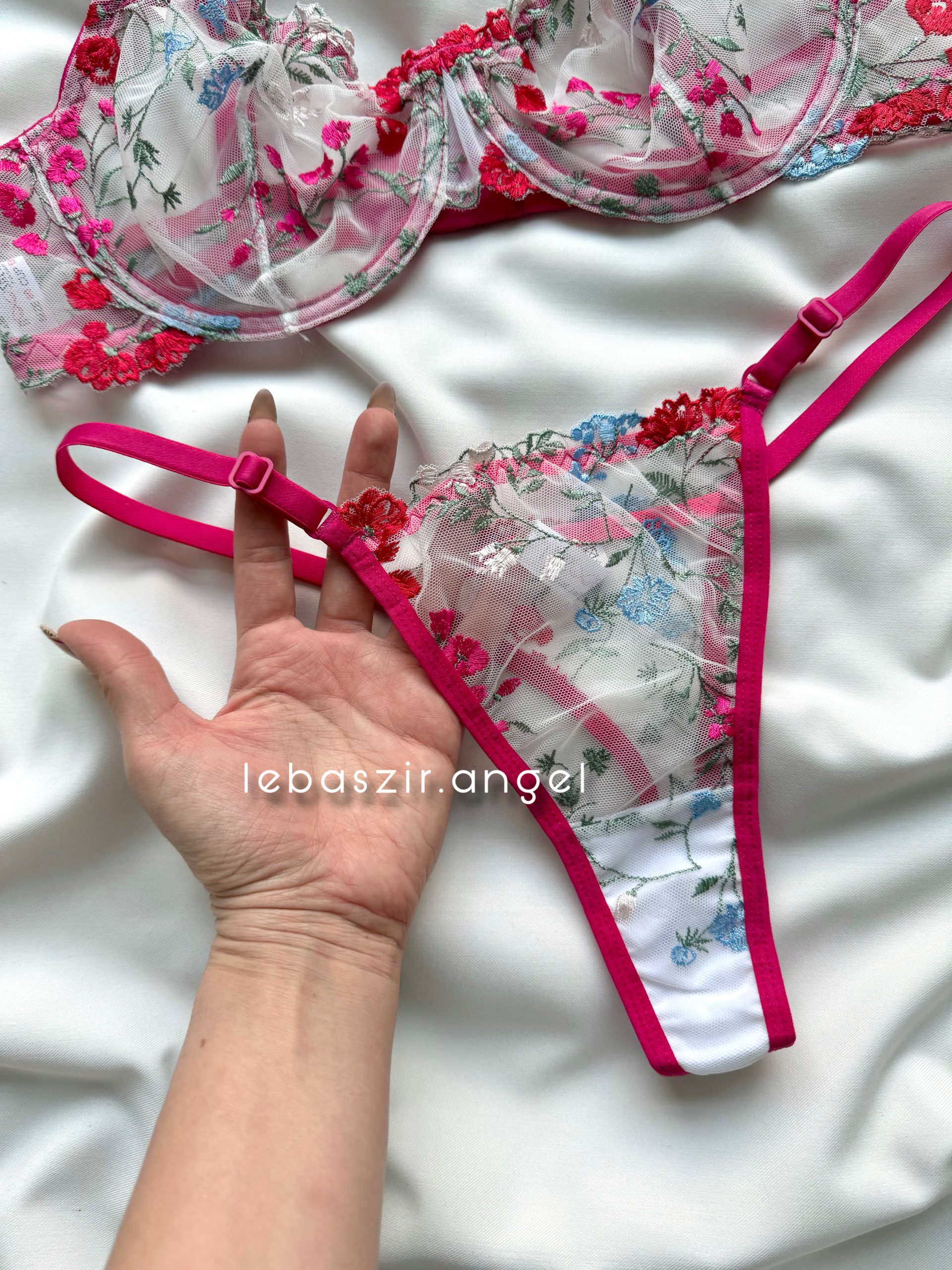 ست سوتین و شورت گیپور فانتزی ۳تیکه فنردار کد 0088