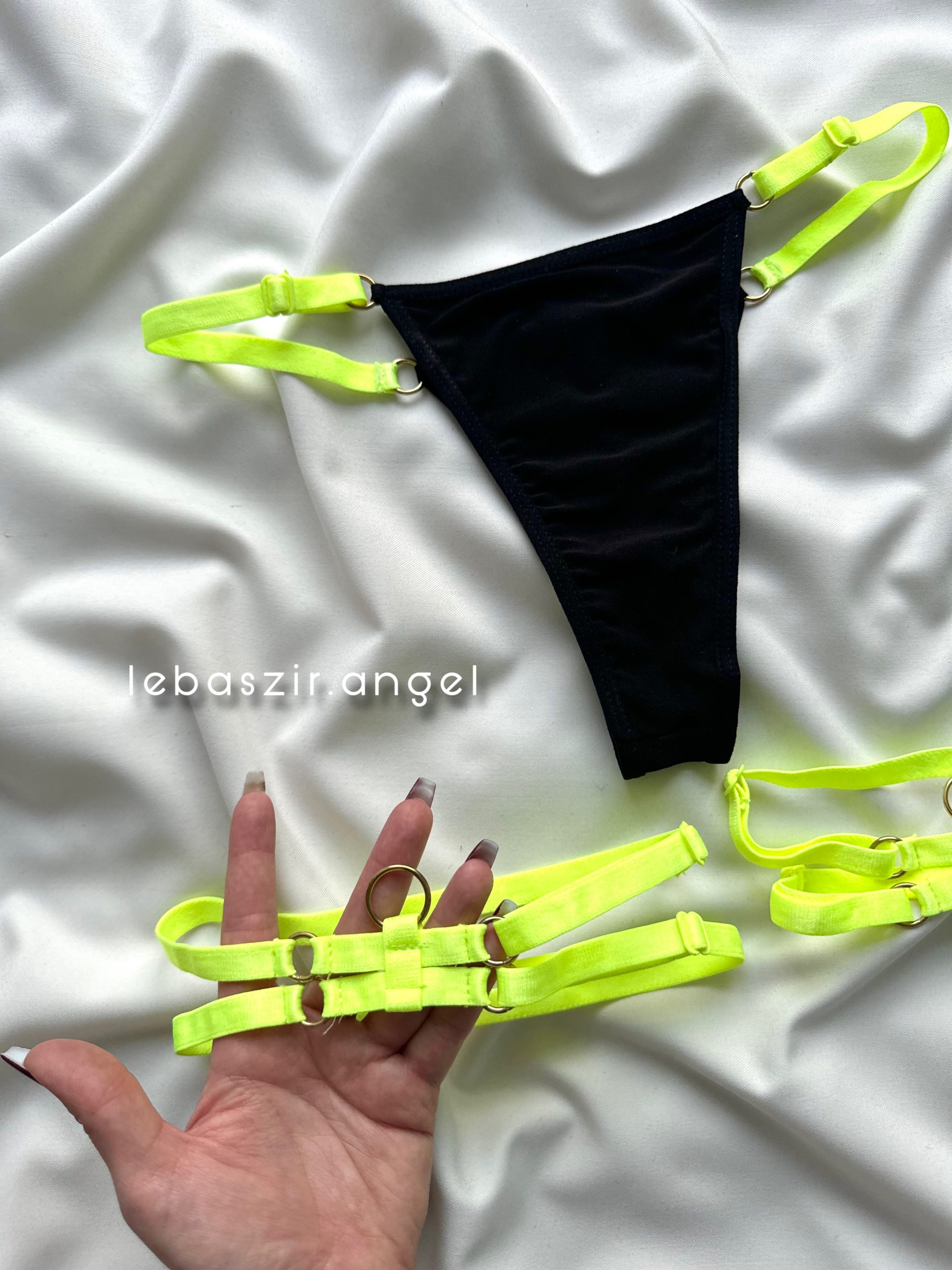 ست شورت لامبادا بندی و دو عدد گارتر دور ران زرد کد 1022