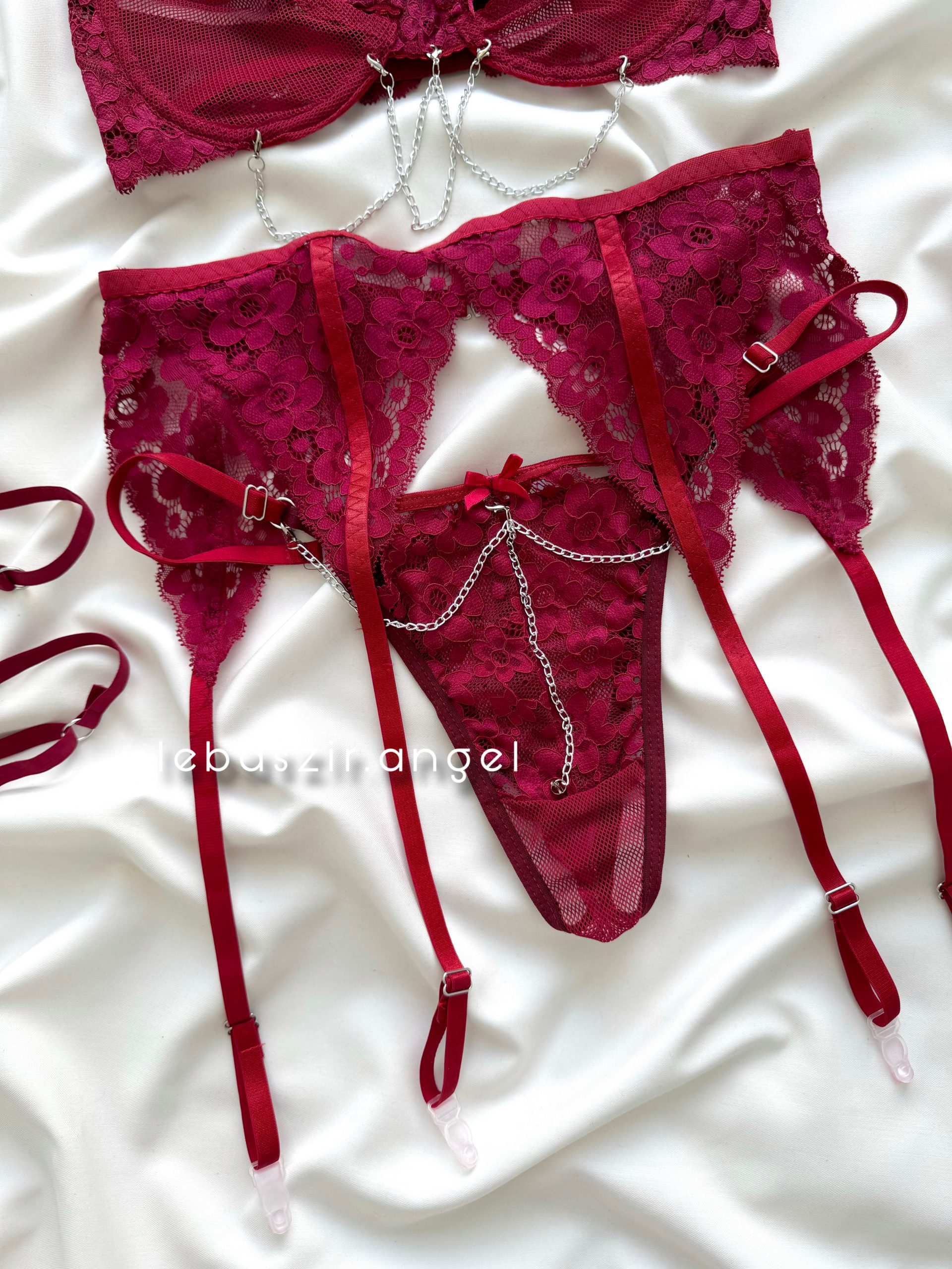 شامل سوتین فنردار زنجیری، شورت لامبادا، گارتر کمر با بند جوراب یا گارتر، دو عدد گارتر دور ران