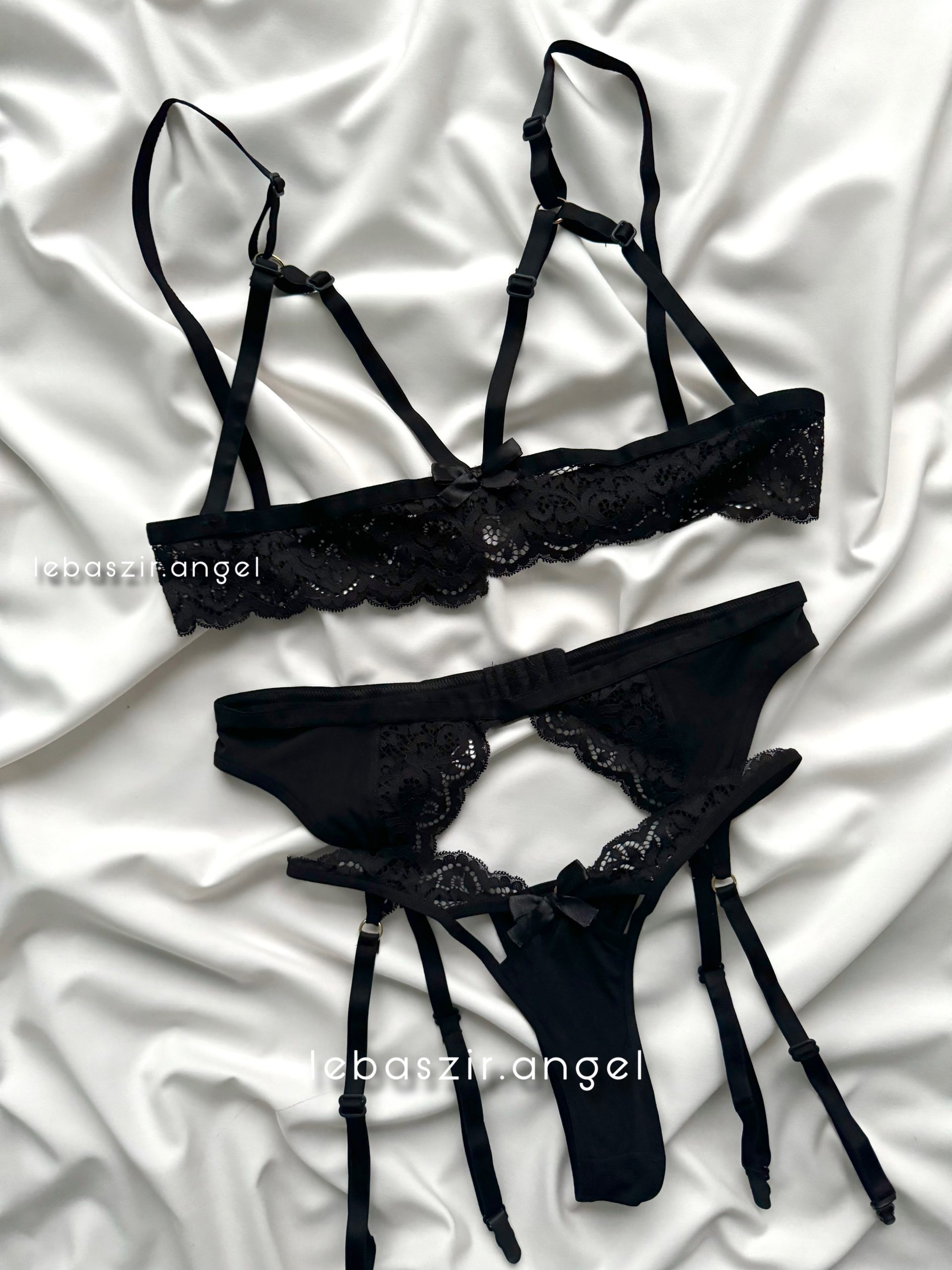 ۳تیکه شامل سوتین فنردار، شورت لامبادا و گارتر کمر و دور ران