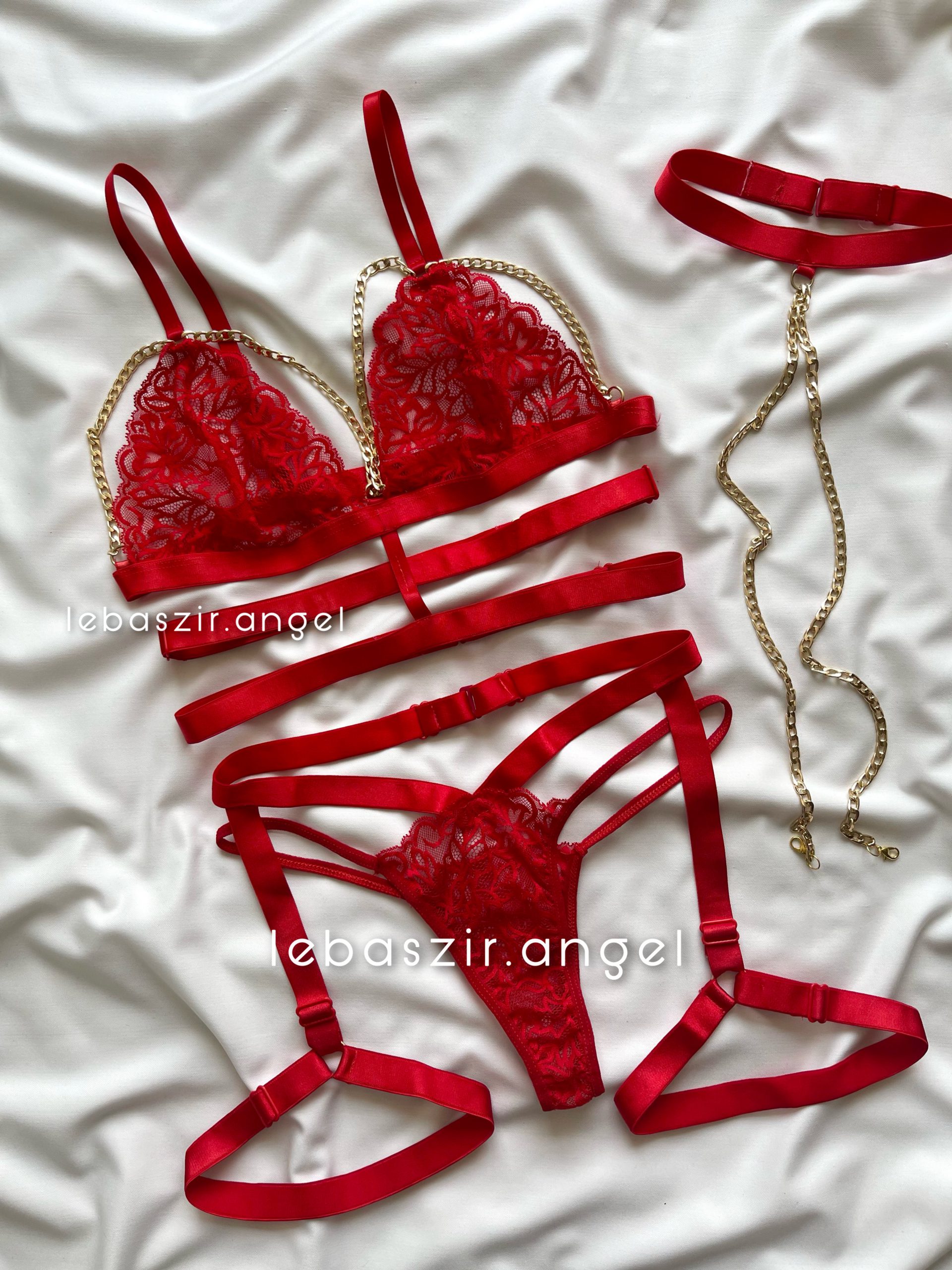 ست نیمتنه و دامن و شورت لامبادا توری قرمز❤️🔥