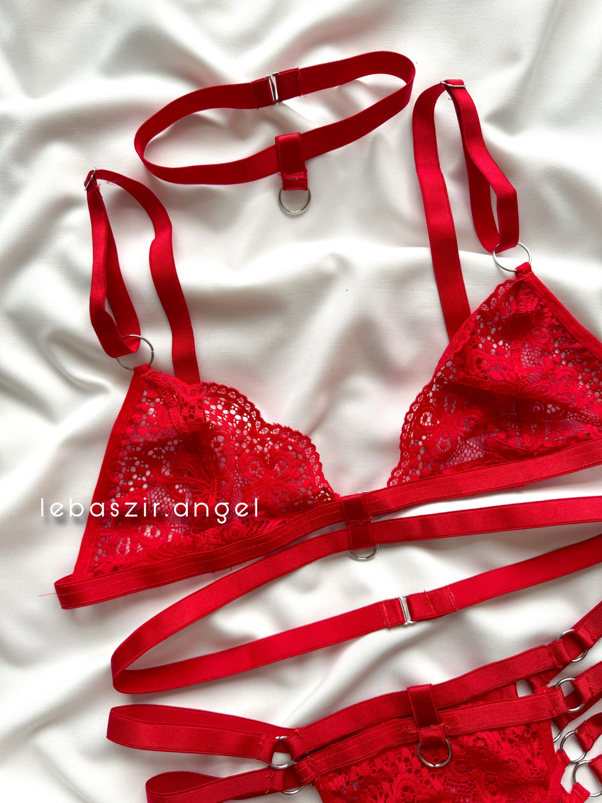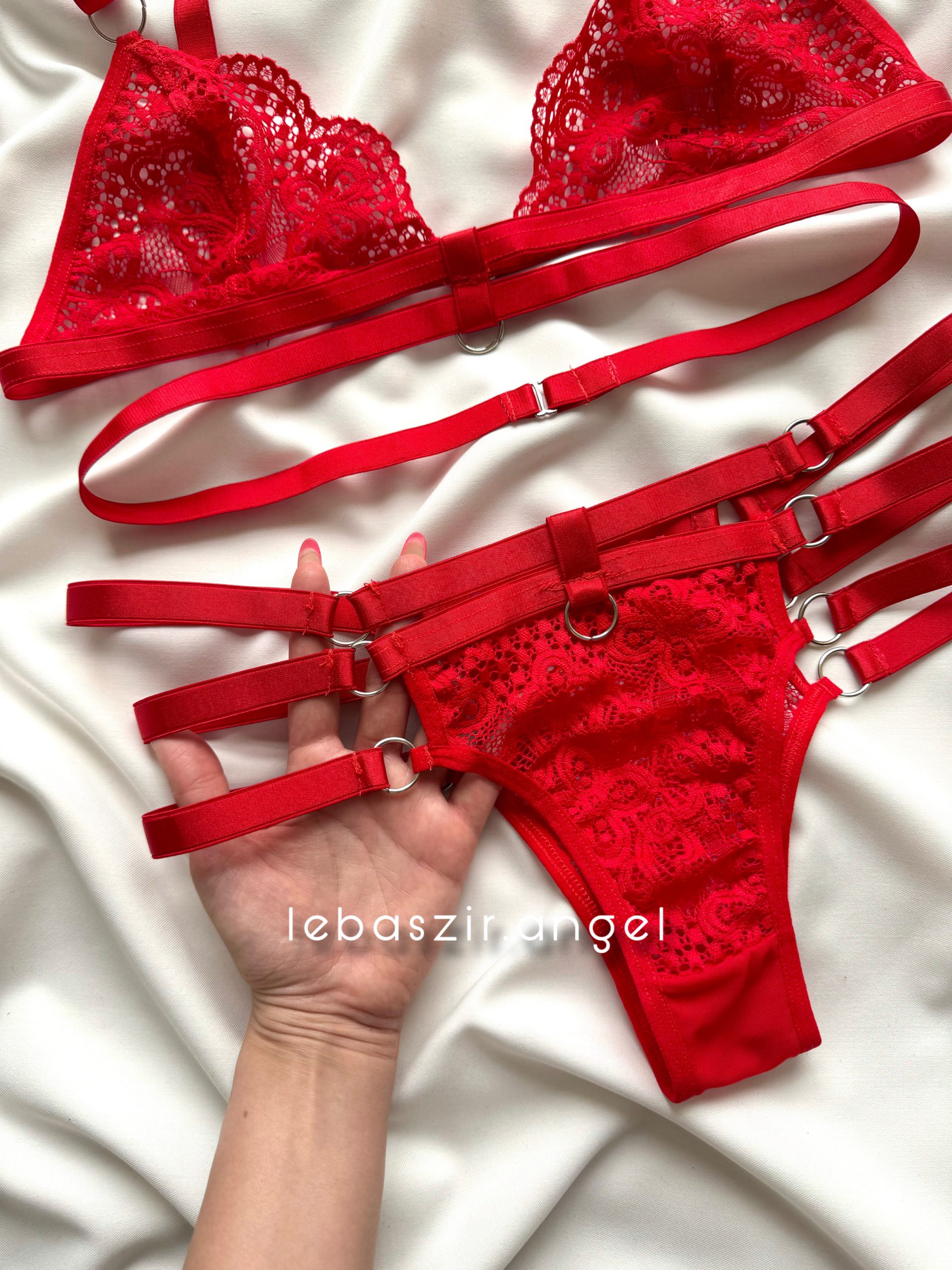 ست نیمتنه و دامن و شورت لامبادا توری قرمز❤️🔥