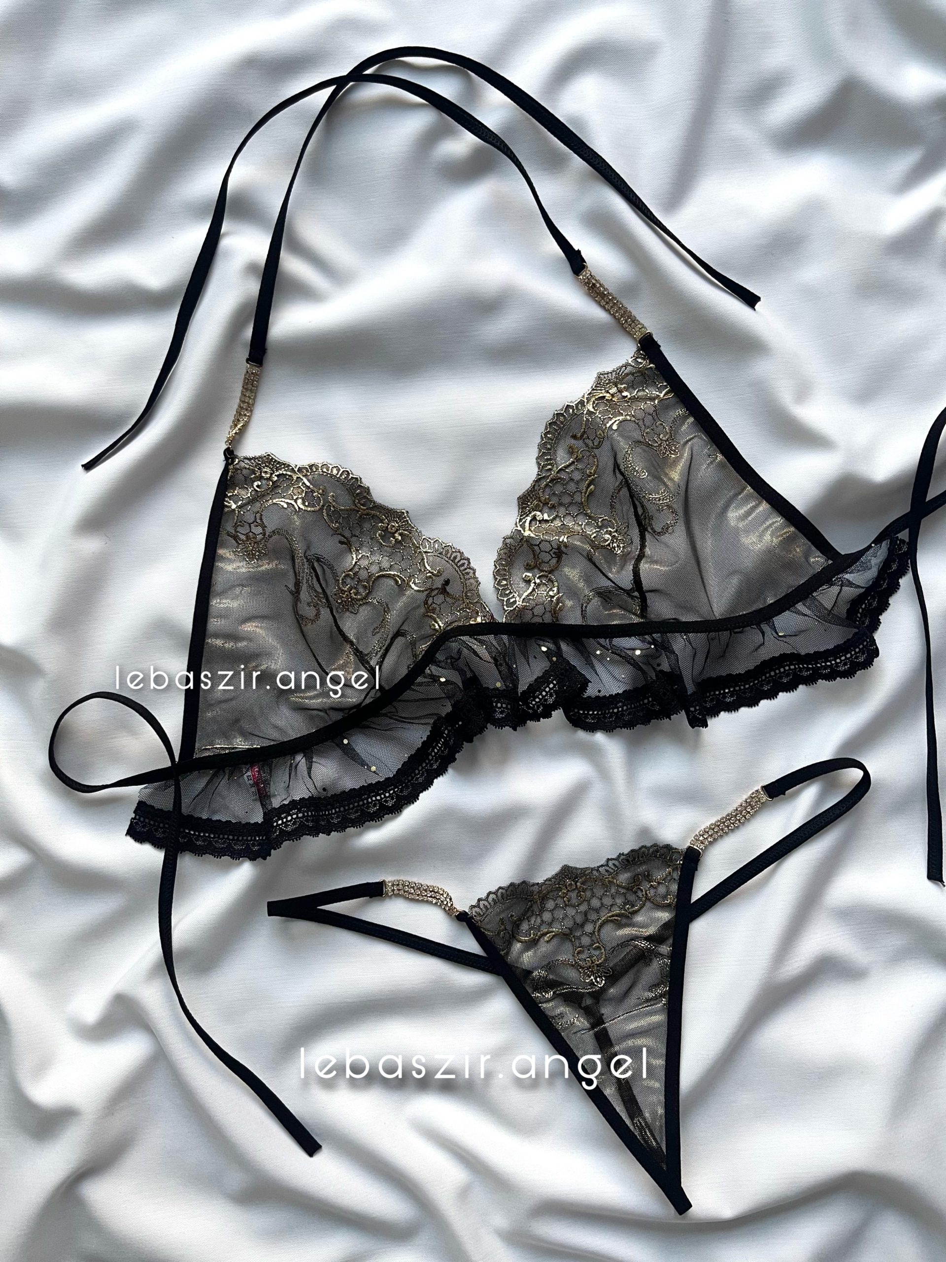 ست سوتین و شورت گیپور فانتزی ۳تیکه فنردار کد 0088