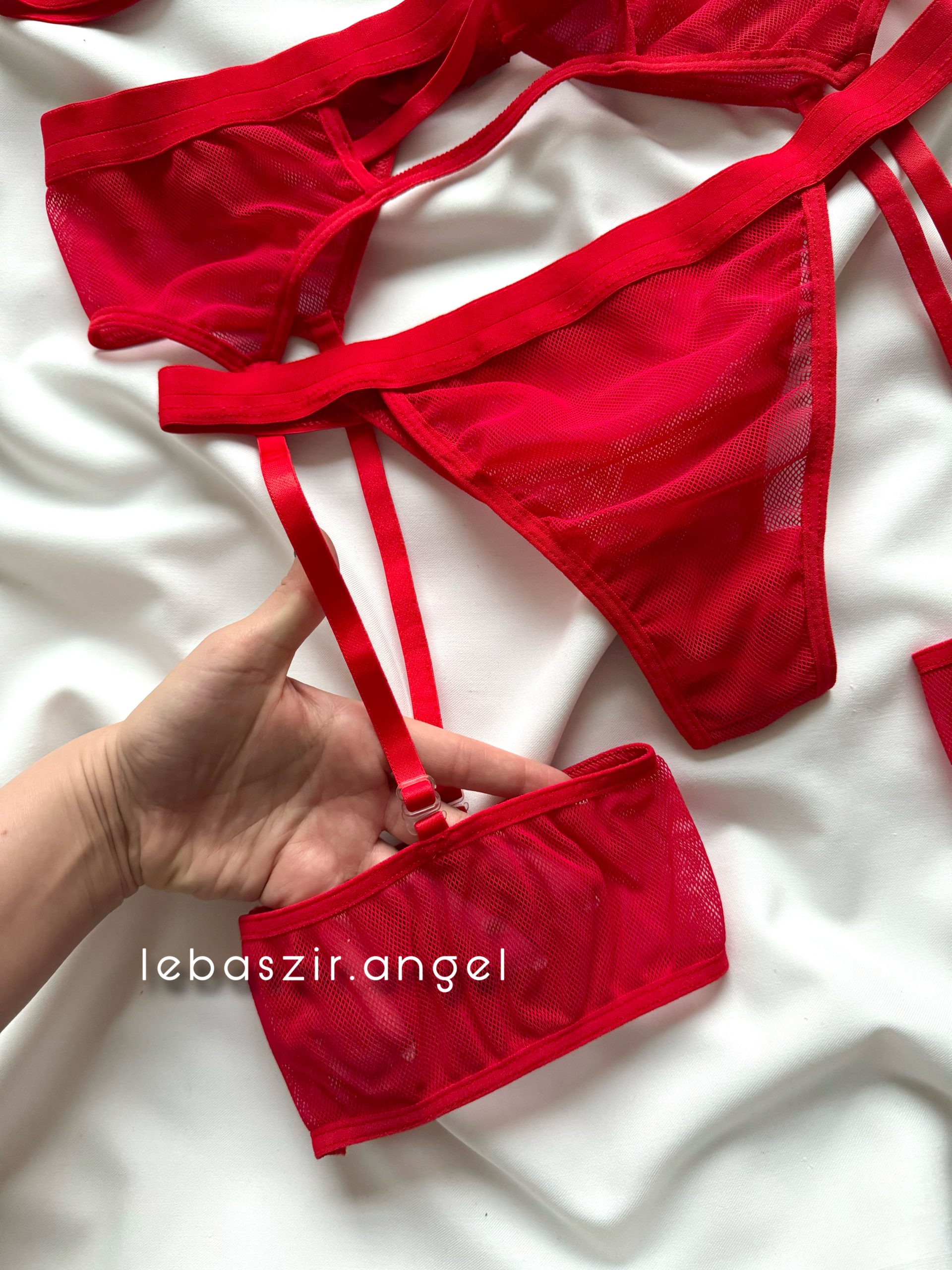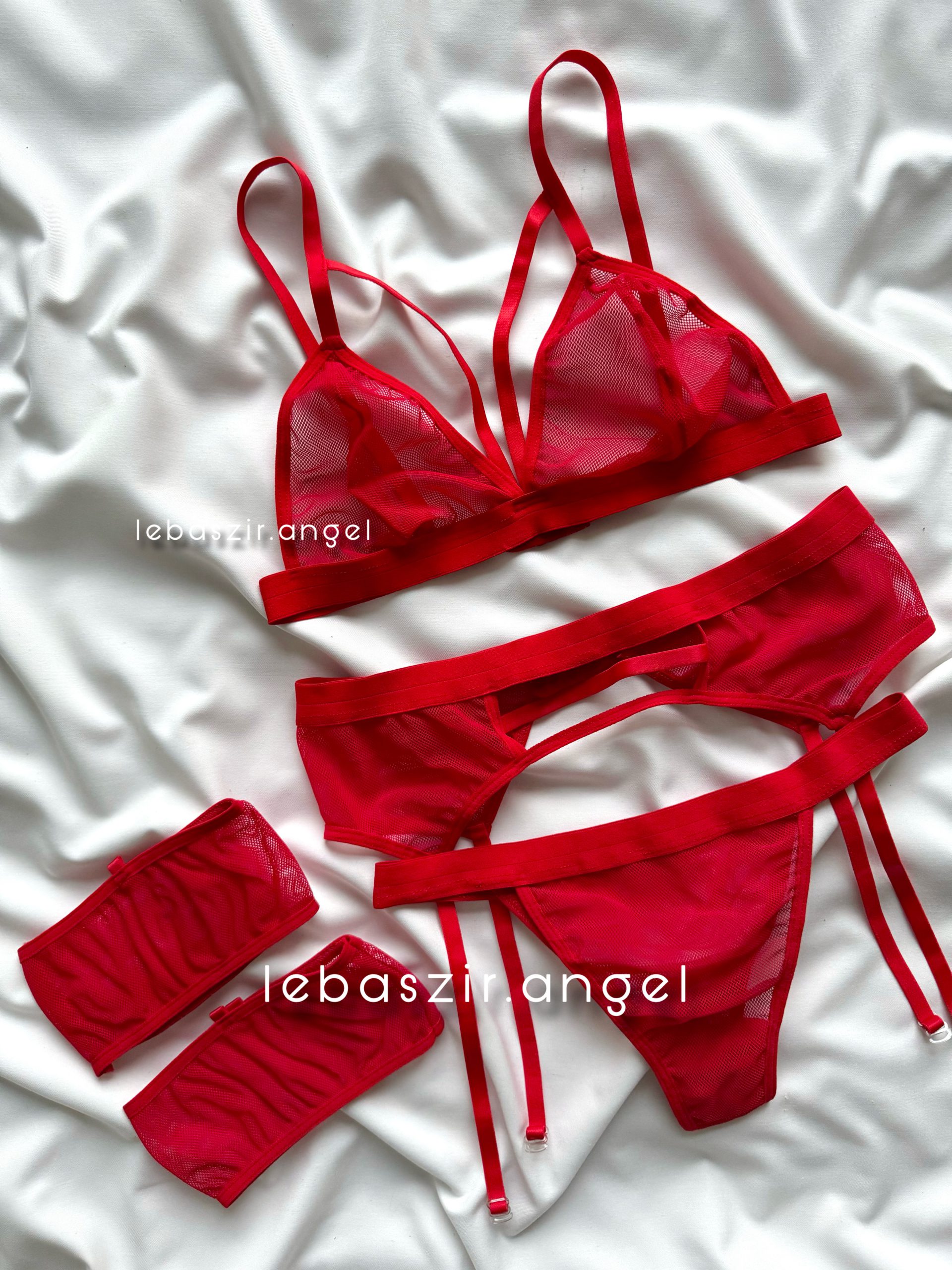 ست نیمتنه و دامن و شورت لامبادا توری قرمز❤️🔥