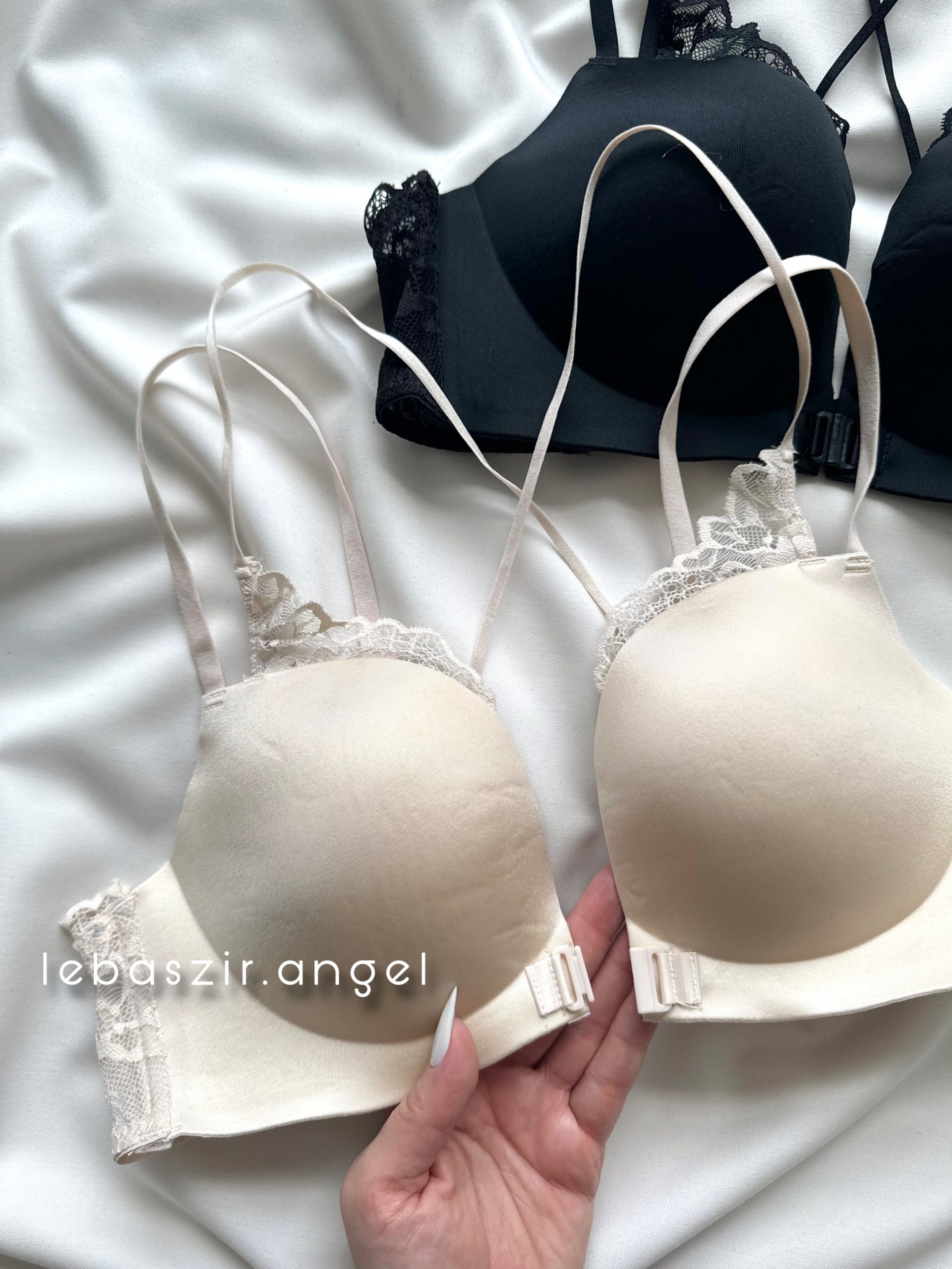 وسط سوتین باز هست و بندهای پشت به دو صورت ساده و ضربدری قابل استفاده هست که نسبت به لباستون تنظیمش کنین 🥰