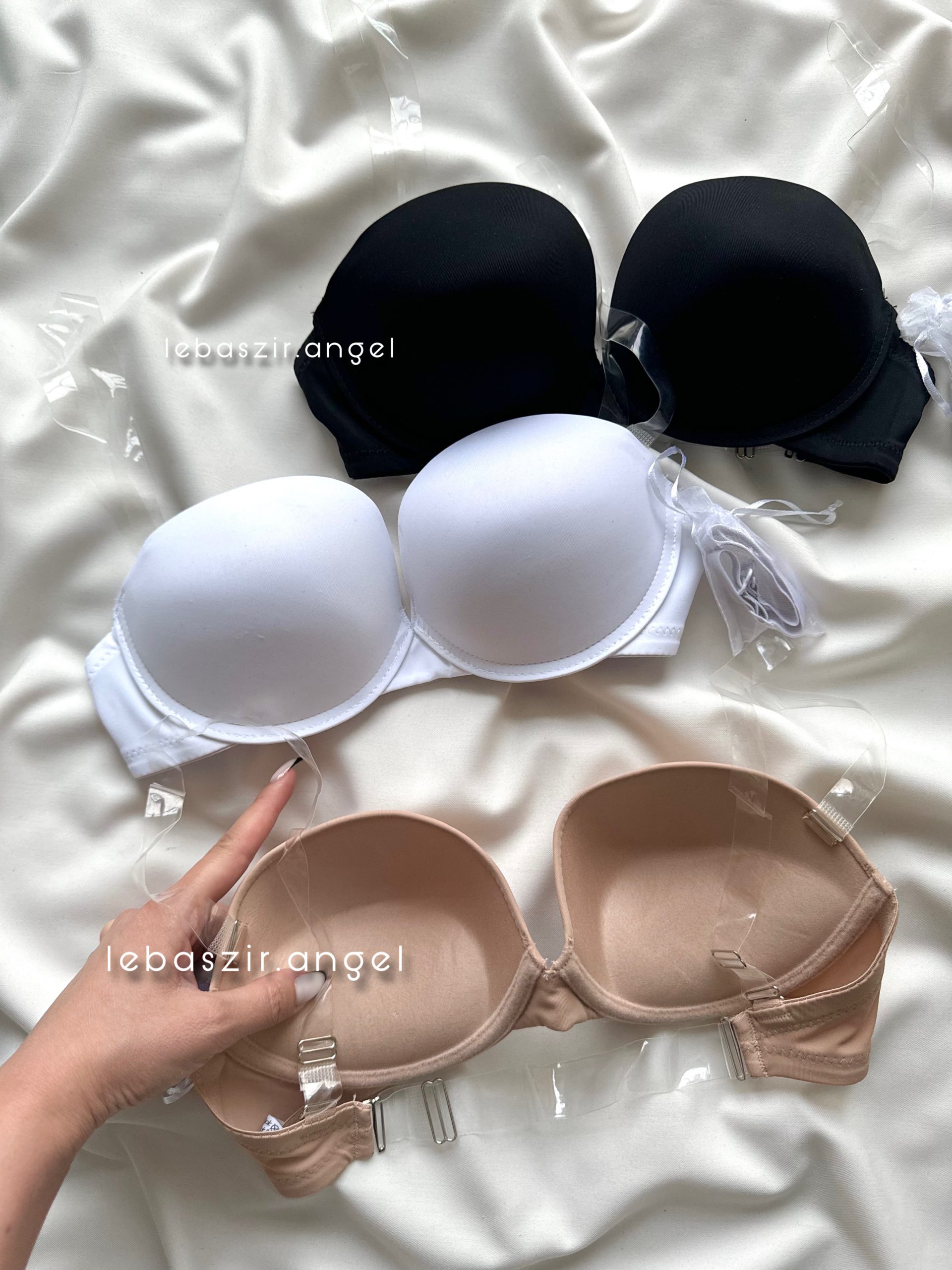وسط سوتین باز هست و بندهای پشت به دو صورت ساده و ضربدری قابل استفاده هست که نسبت به لباستون تنظیمش کنین 🥰