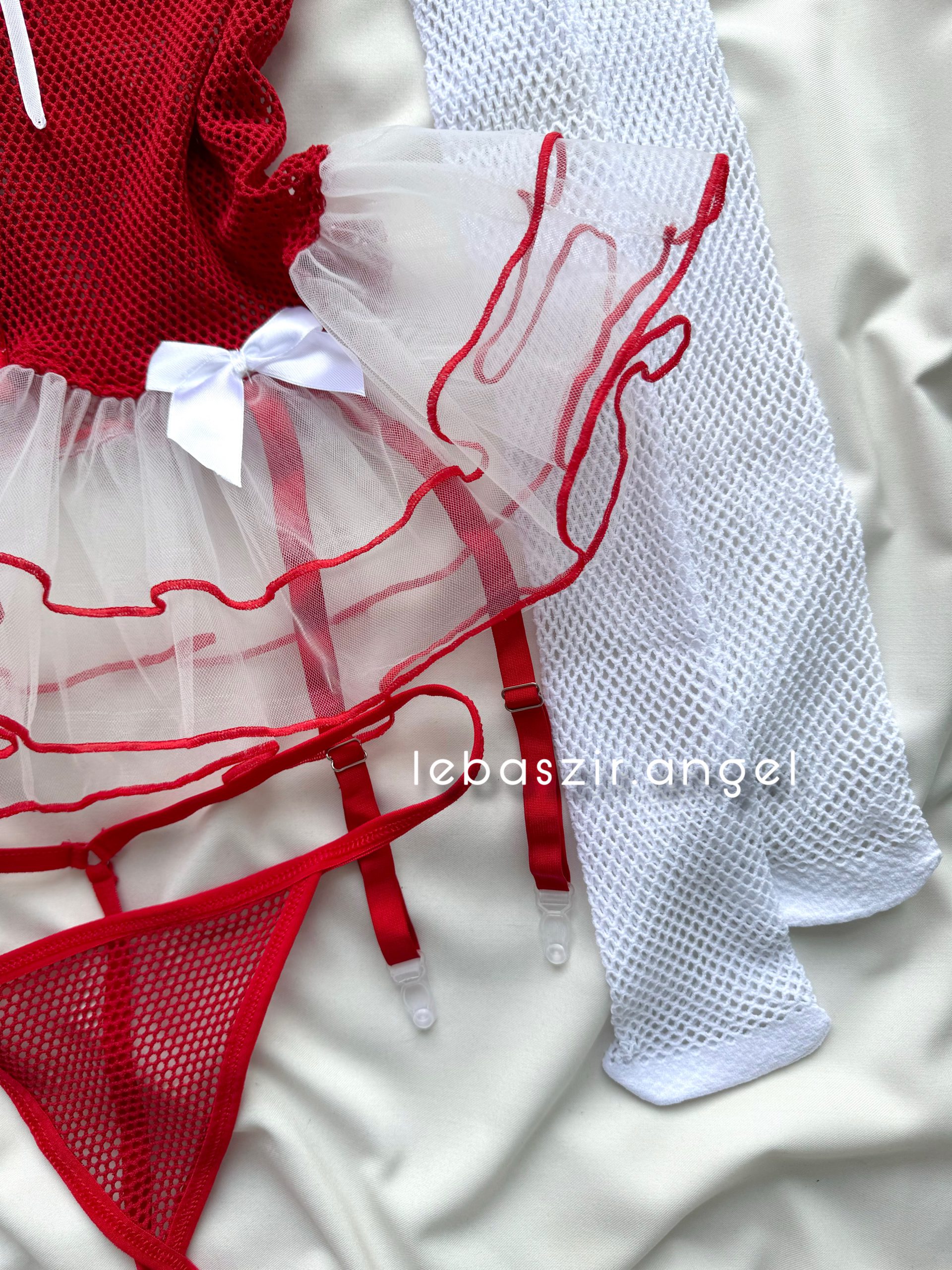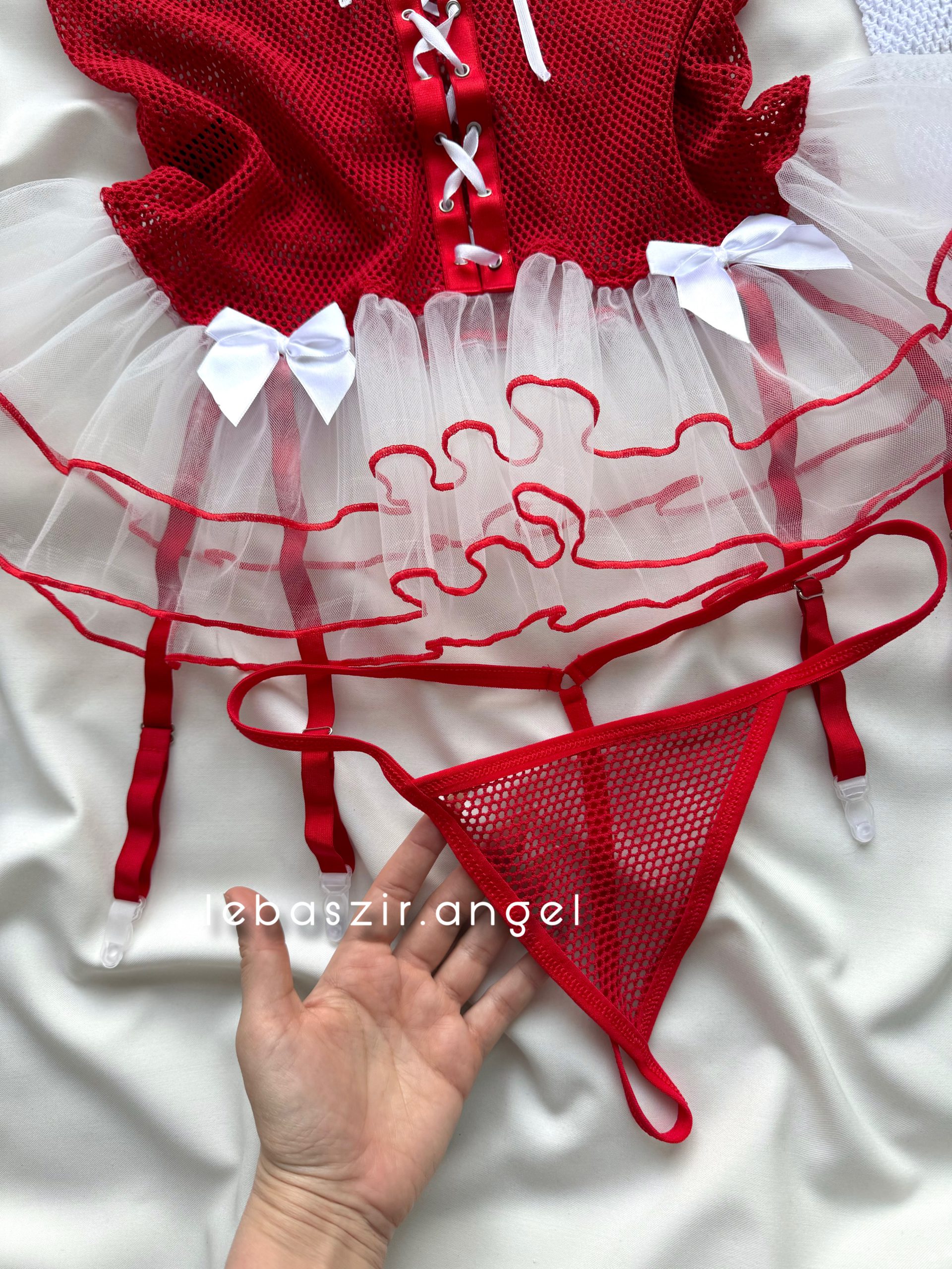 ست نیمتنه و دامن و شورت لامبادا توری قرمز❤️🔥