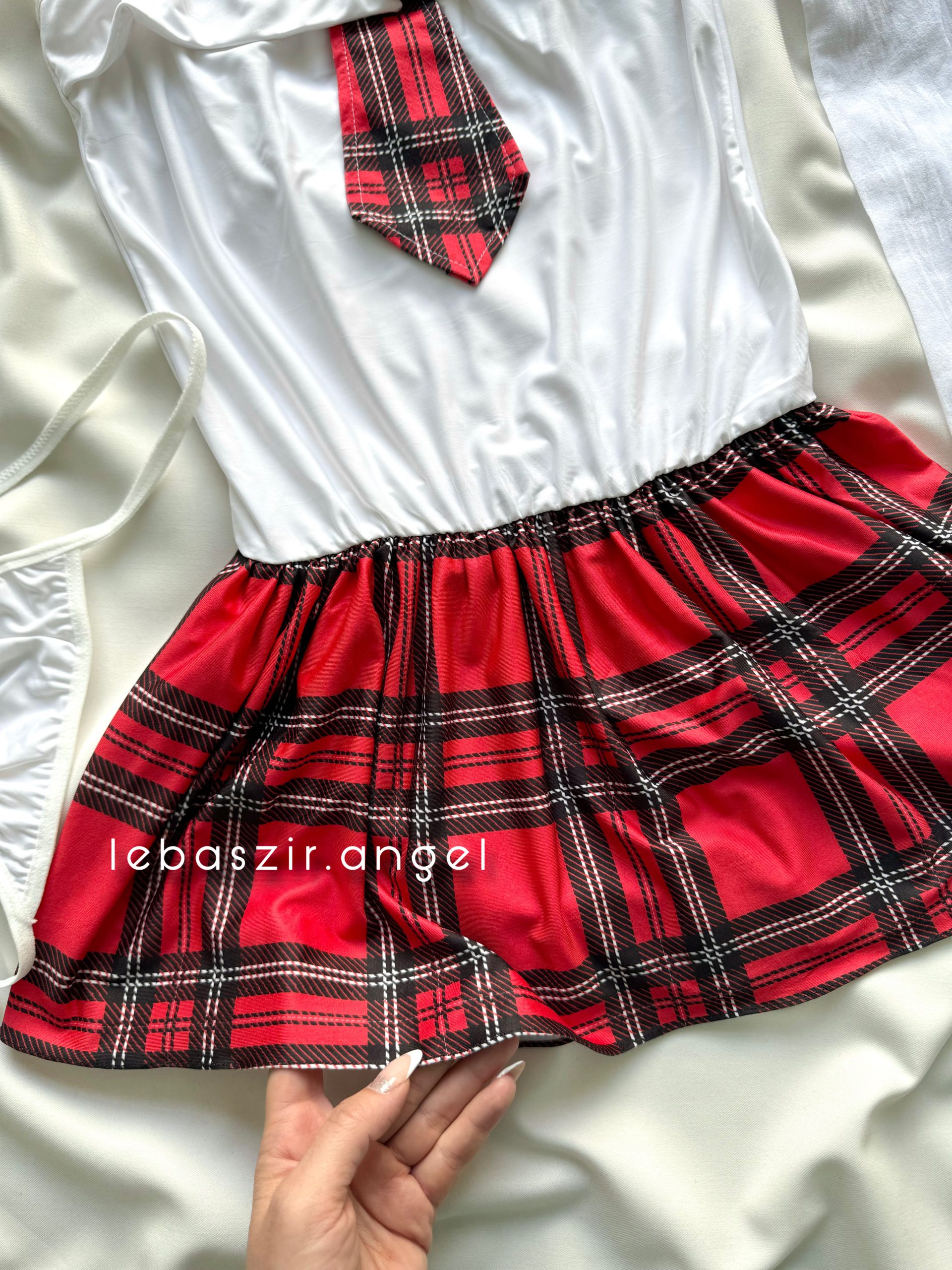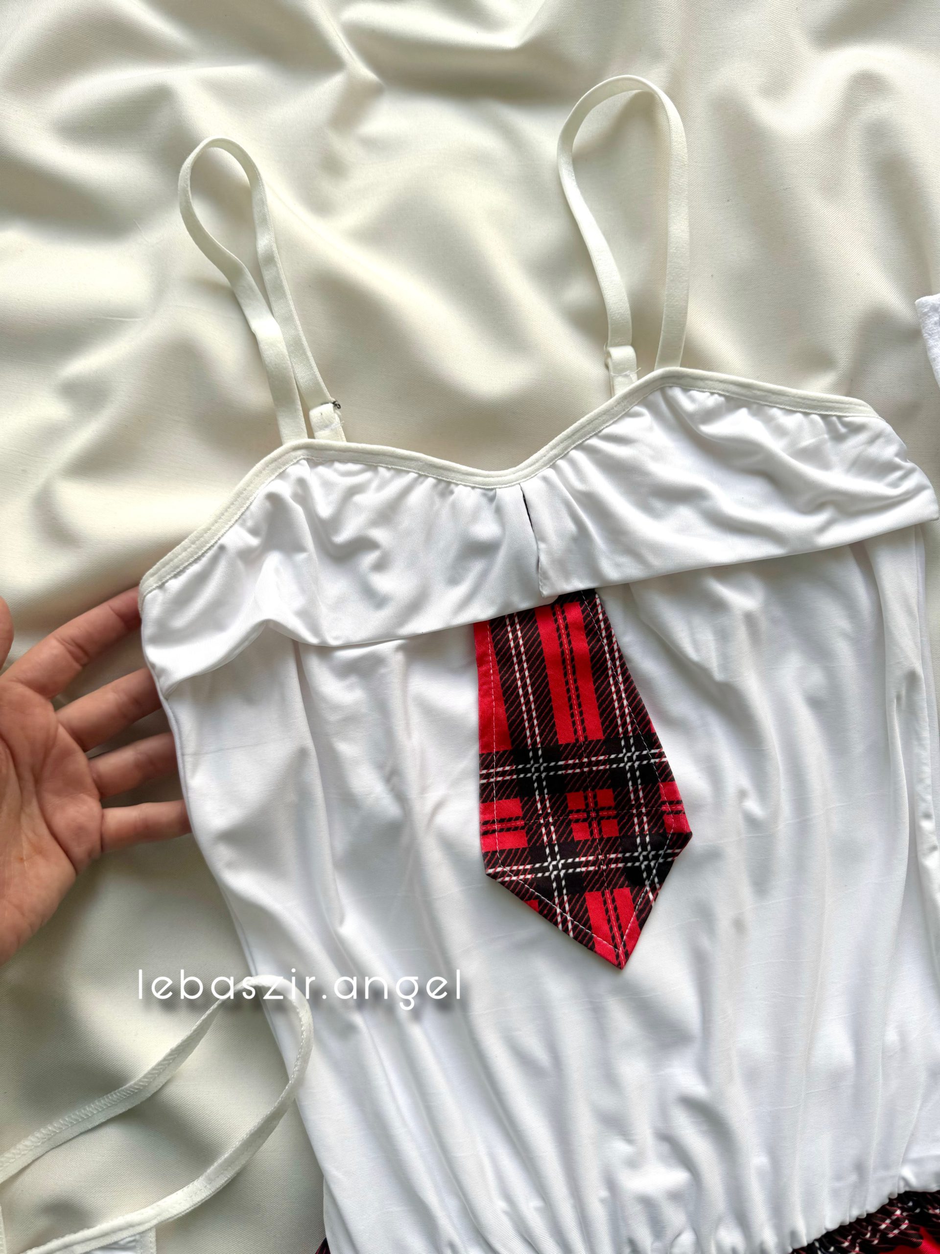 شامل سوتین فنردار، دامن، شورت لامبادا، بند جوراب و جوراب