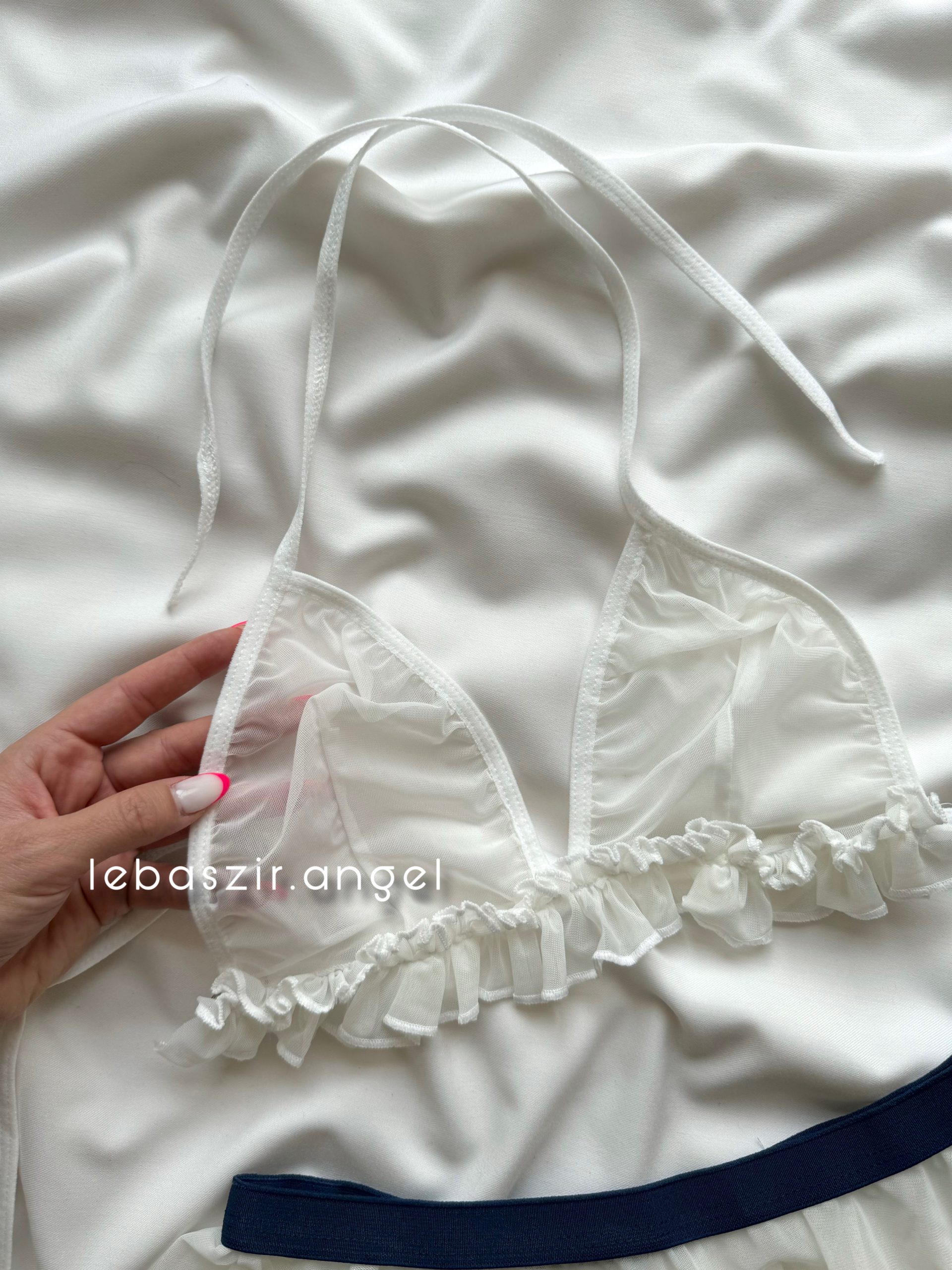 ست کامل شامل سوتین دور گردنی، کراوات، دامن و شورت لامبادا