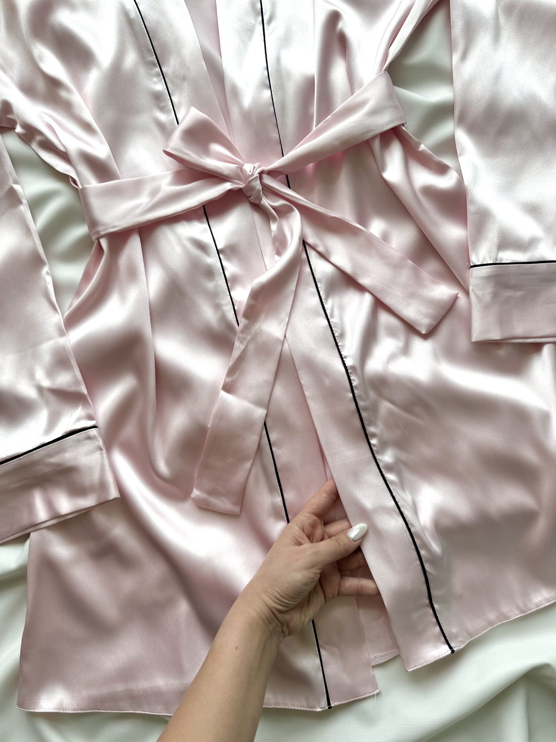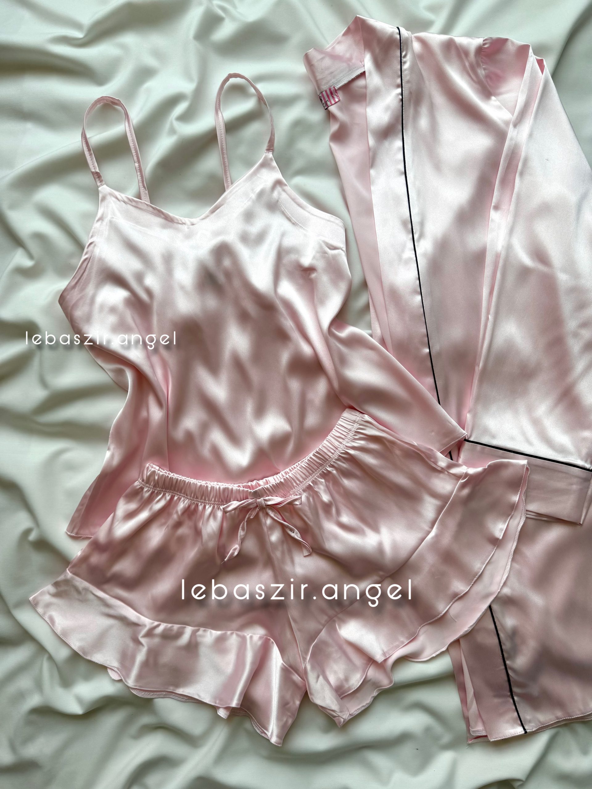 ست تاپ، شلوارک و روبدوشامبر ساتن صورتی