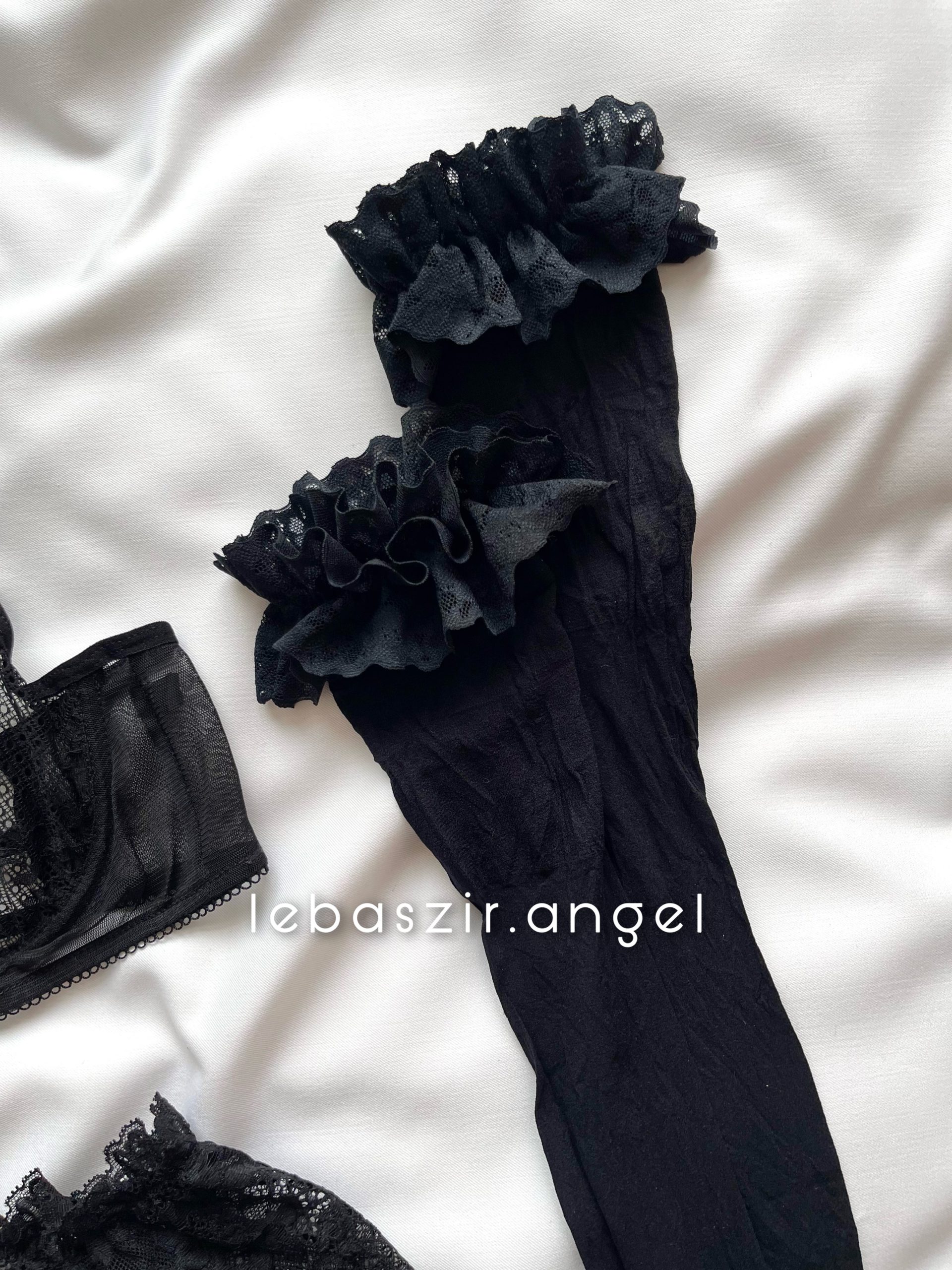 ۴تیکه شامل سوتین فنردار، دامن پشت بندی، شورت لامبادا و جوراب فیشنت
